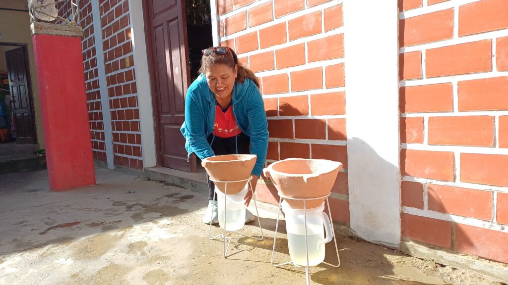 Agrega que, al tratarse de una experiencia pionera en Bolivia, los primeros intentos fallaron: piezas que se rajaban durante la cocción, mezclas que no lograron la porosidad adecuada, filtros que se rompían al entrar en contacto con la humedad. Cada error implicaba volver a empezar.